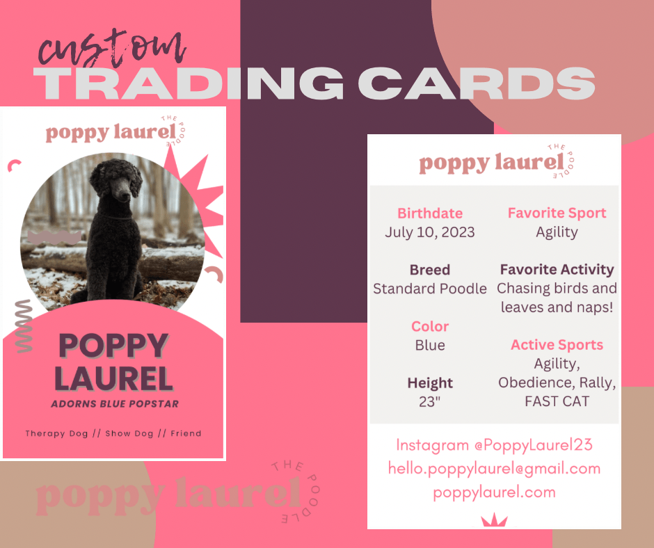 Custom Trading Cards are the perfect gift for Therapy Dog Teams, National Dog Trials, Trick Dogs, Breed influencers and more! Customize your stats and titles for your dog!